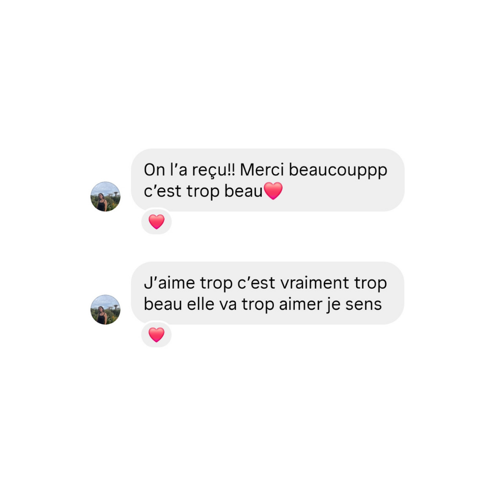 Si nécessaire, vous recevrez également par mail, des idées de souvenirs à illustrer ainsi qu’un questionnaire pour recueillir les éléments essentiels (histoire, photos de référence, détails importants).